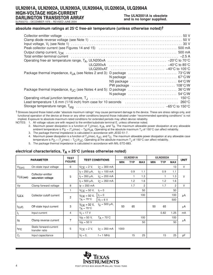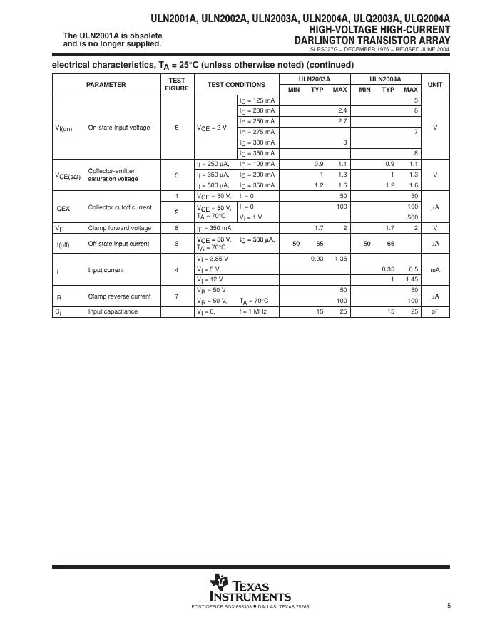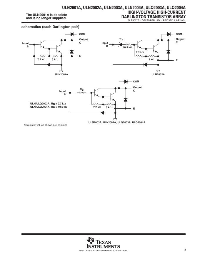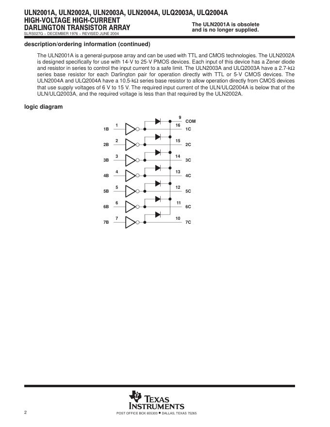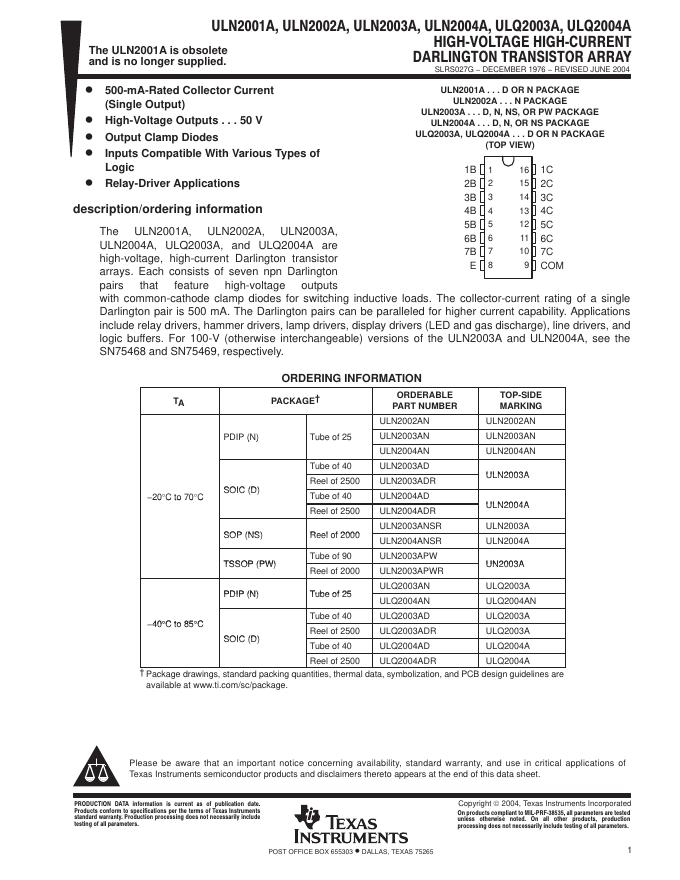 TEXAS INSTRUMENTS ULN2001A, ULN2002A, ULN2003A, ULN2004A, ULQ2003A, ULQ2004A 数据手册.pdf