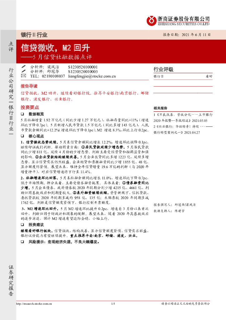 浙商证券:5月信贷社融数据点评:信贷微收,M2回升.pdf