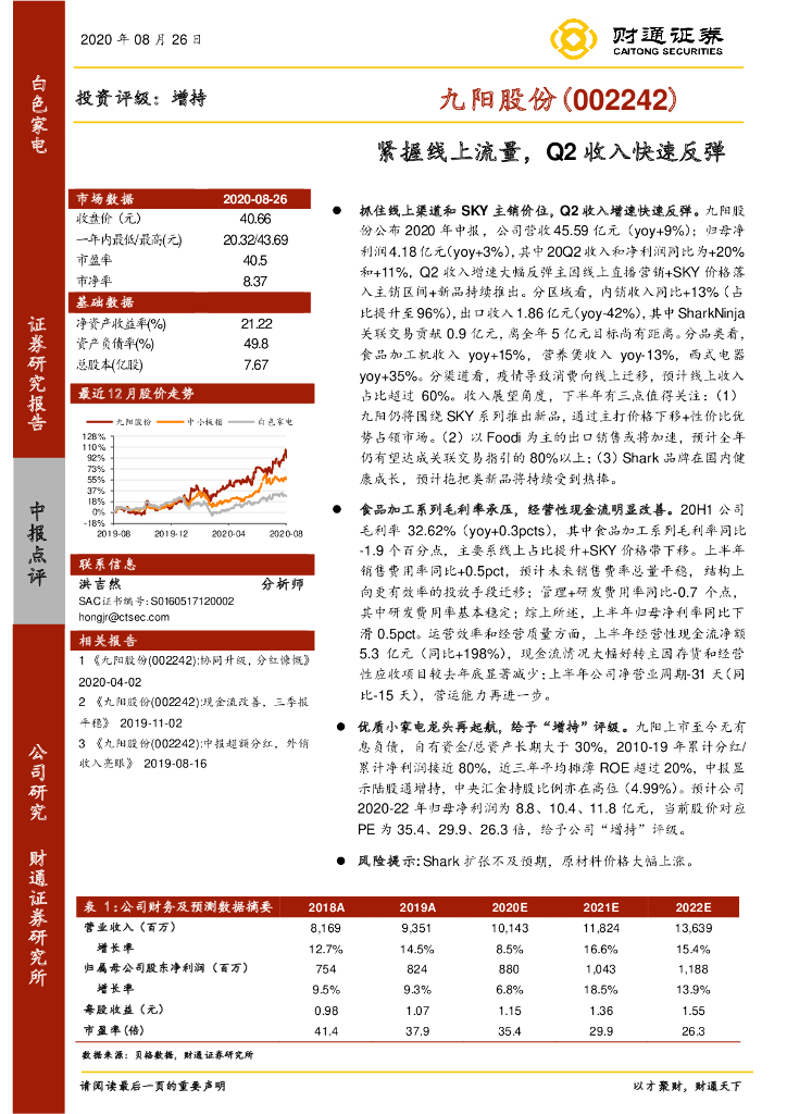 财通证券:九阳股份(002242)-紧握线上流量,Q2收入快速反弹.pdf