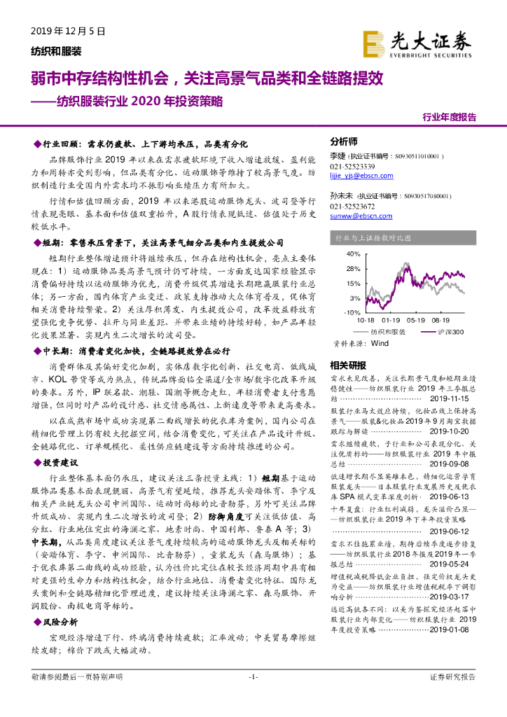 光大证券:纺织服装行业2020年投资策略:弱市中存结构性机会,关注高景气品类和全链路提效.pdf