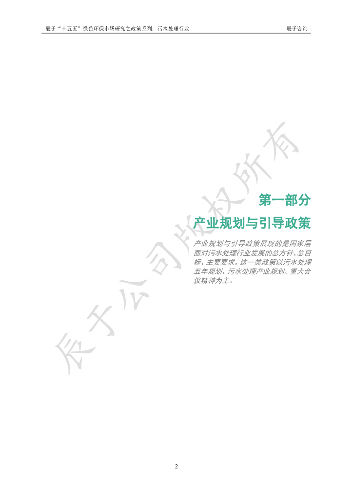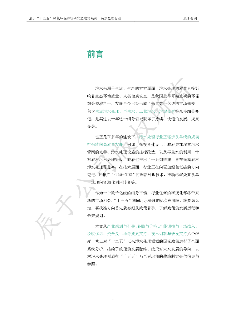 辰于:2024“十五五”绿色环保市场研究之政策系列之一:污水处理行业.pdf