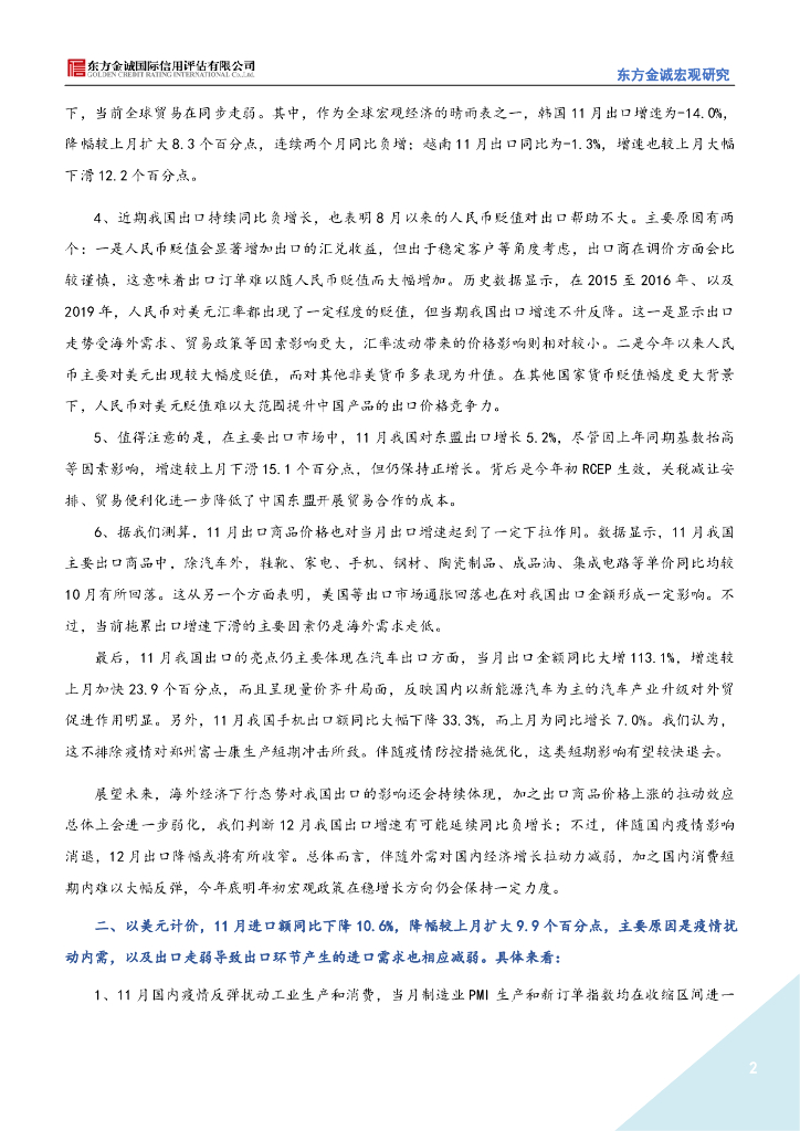东方金诚:外需走弱叠加国内疫情扰动,11月进出口加快下滑——2022年11月贸易数据点评.pdf