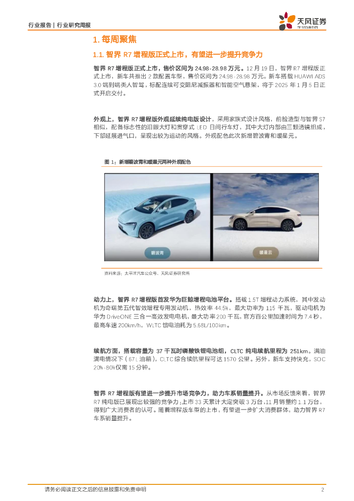 天风证券:天风汽车周报:智界R7增程版正式上市,有望进一步提升竞争力.pdf