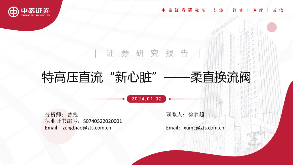 中泰证券:柔直换流阀:特高压直流“新心脏”.pdf