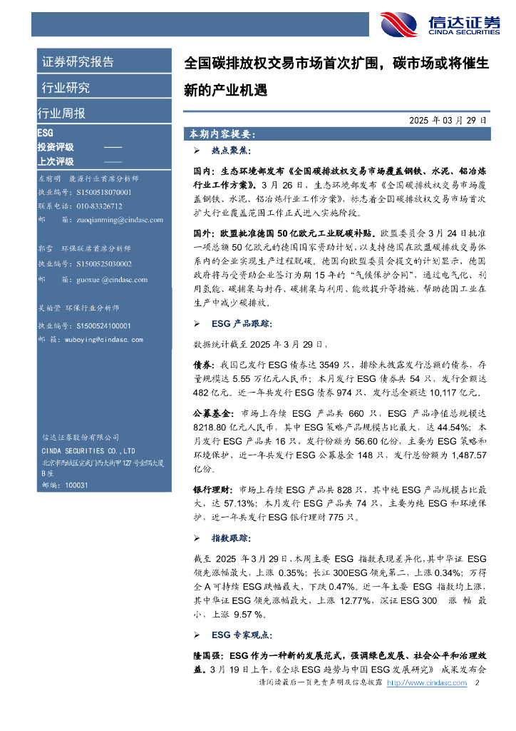 信达证券:ESG周报:全国碳排放权交易市场首次扩围,碳市场或将催生新的产业机遇.pdf