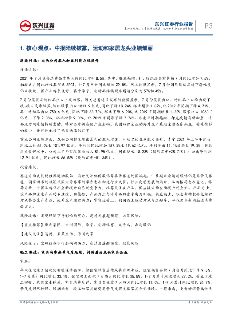东兴证券:东兴纺服轻工行业周观点:中报陆续披露,运动和家居龙头业绩靓丽.pdf