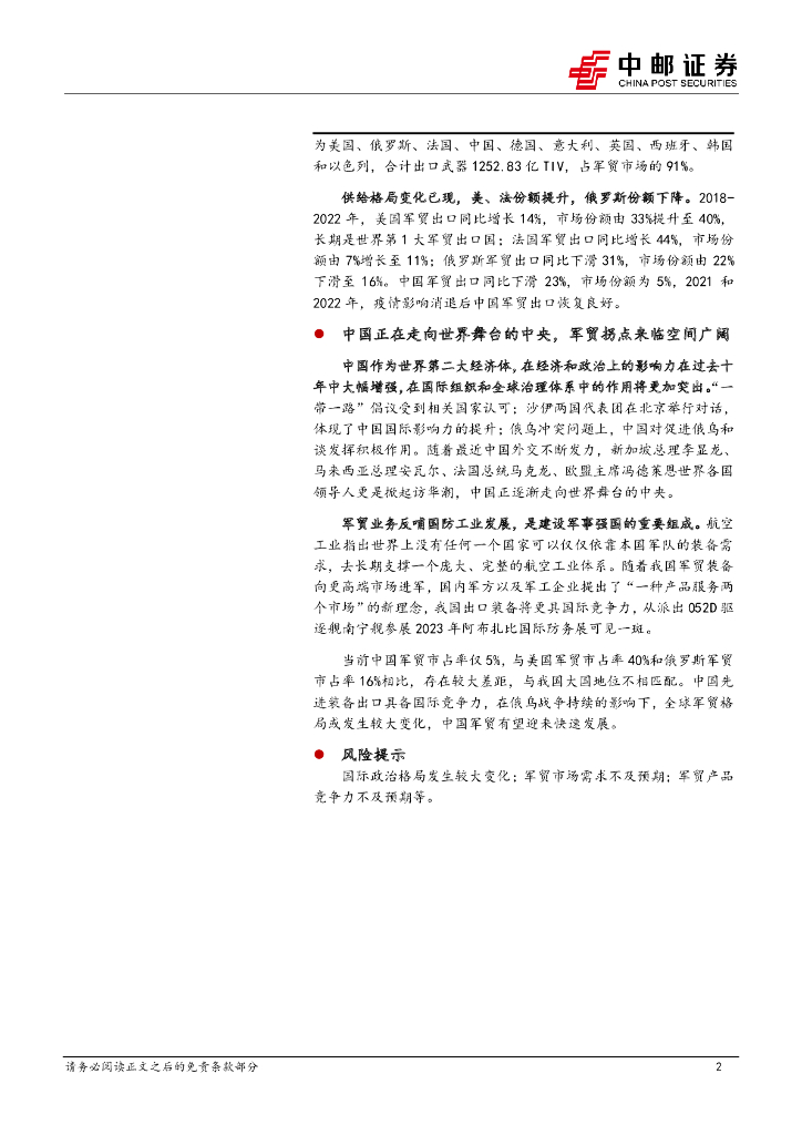 中邮证券:军贸深度之一:全球军贸市场持续增长,中国军贸出口有望迎来大发展.pdf