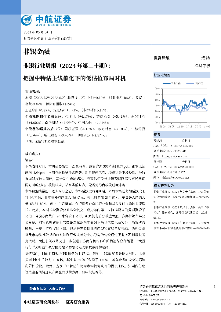 中航证券:非银行业周报(第二十期):把握中特估主线催化下的低估值布局时机.pdf
