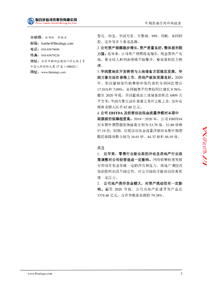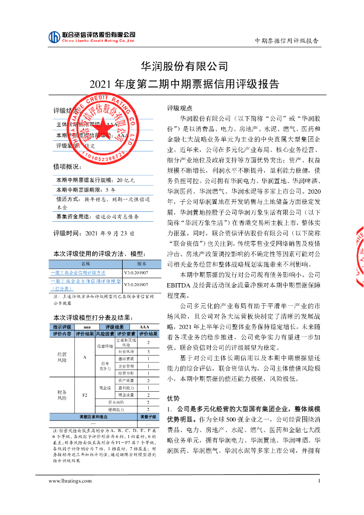 联合资信:华润股份有限公司2021年度第二期中期票据信用评级报告.pdf