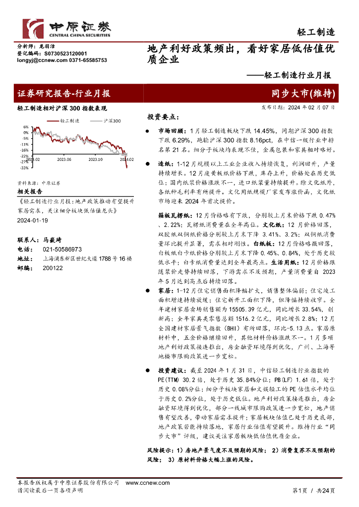 中原证券:轻工制造行业月报:地产利好政策频出,看好家居低估值优质企业.pdf