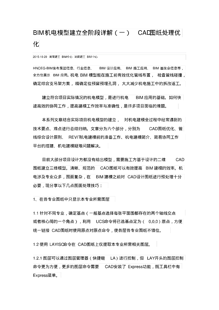 BIM机电模型建立全阶段详解(一)CAD图纸处理优化.pdf