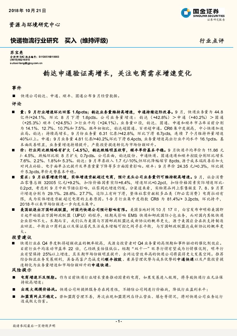 国金证券:快递物流行业研究:韵达申通验证高增长,关注电商需求增速变化.pdf