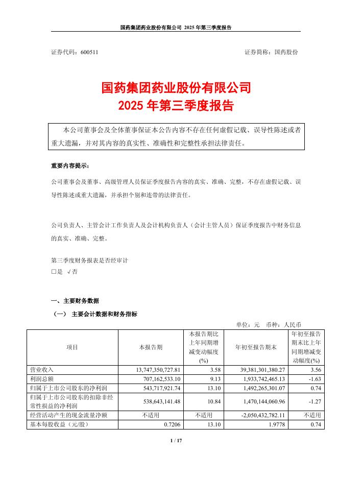 600511-国药股份:国药股份2025年第三季度报告.pdf