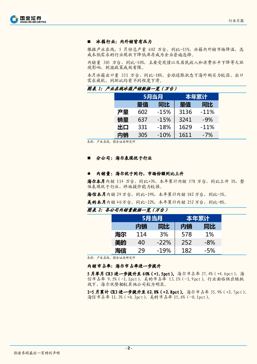 国金证券:家电行业研究:产业在线5月冰箱数据点评-行业整体承压,海尔市占率提升.pdf