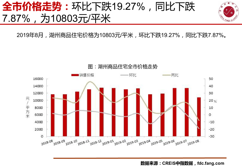 中国指数研究院:湖州房地产市场快报(2019年8月).pdf