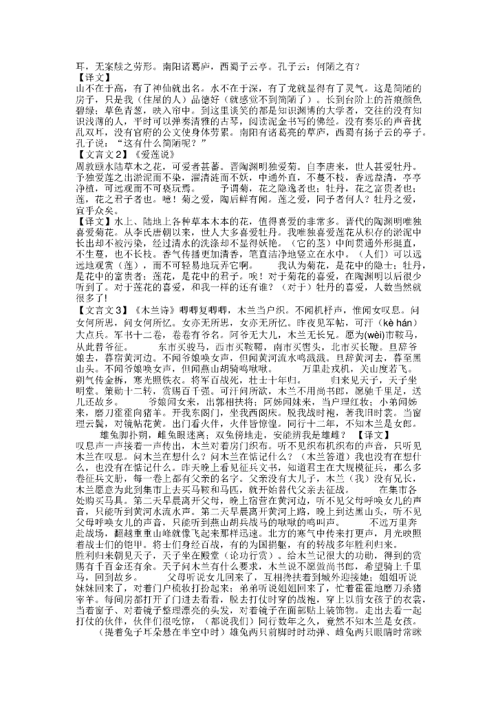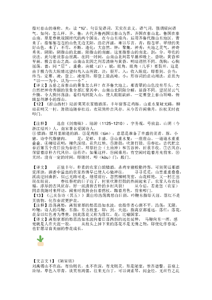 初中语文七年级下册语文必背古诗文整理(原文+译文),寒假预习必收!.doc