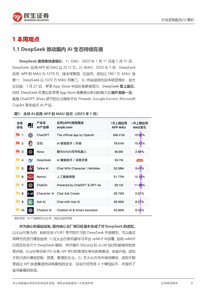 民生证券:计算机周报:国产AI算力或是DeepSeek预期差最大的受益方向.pdf