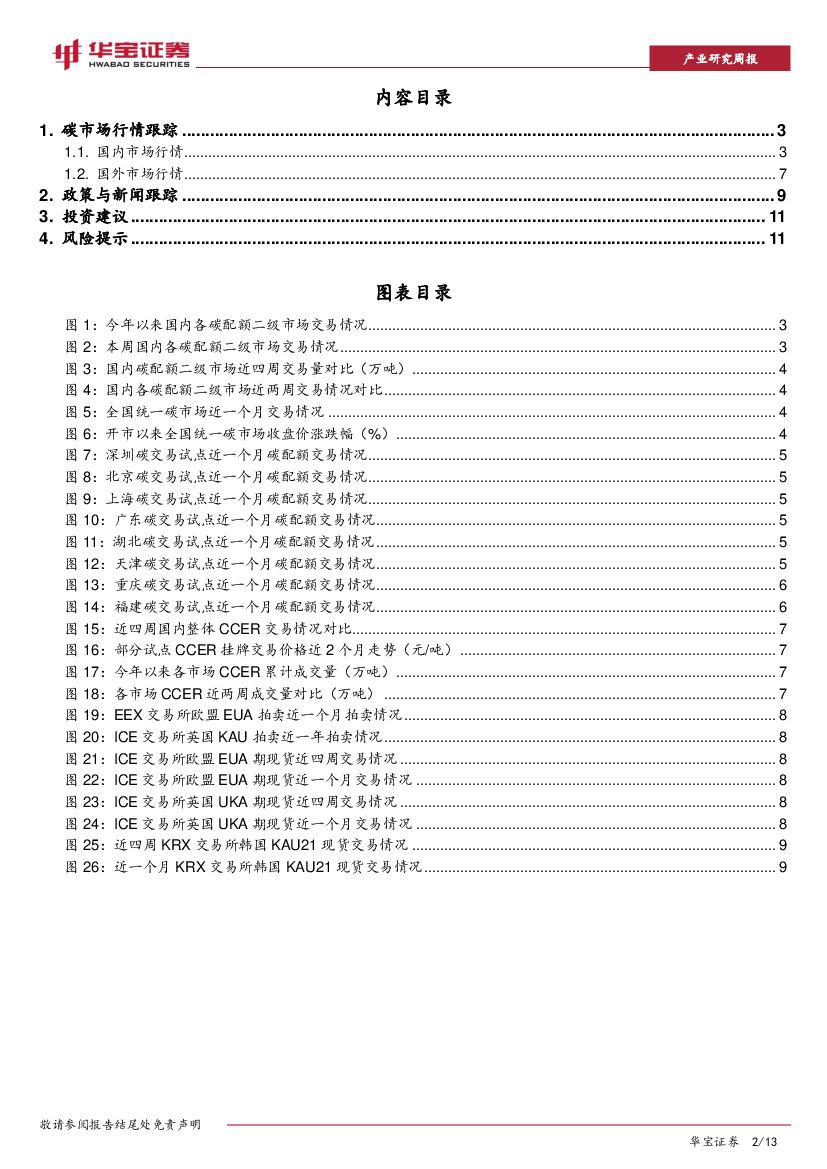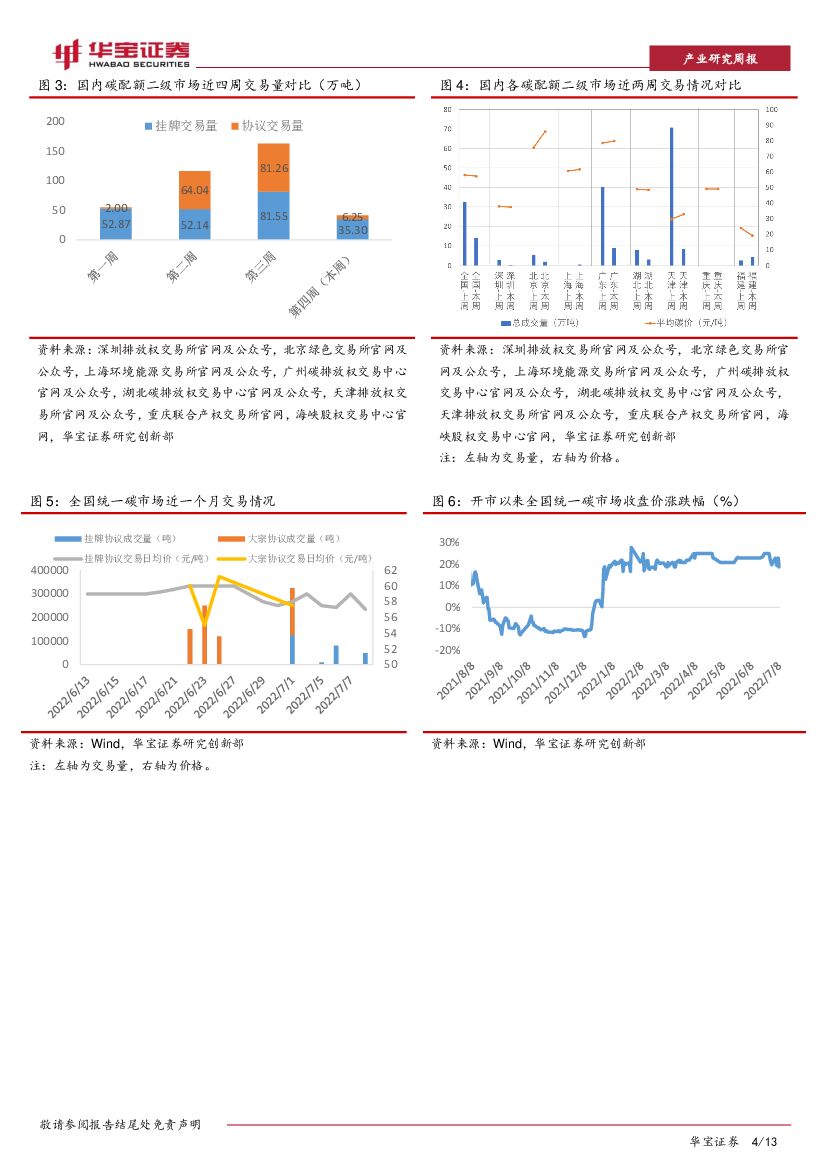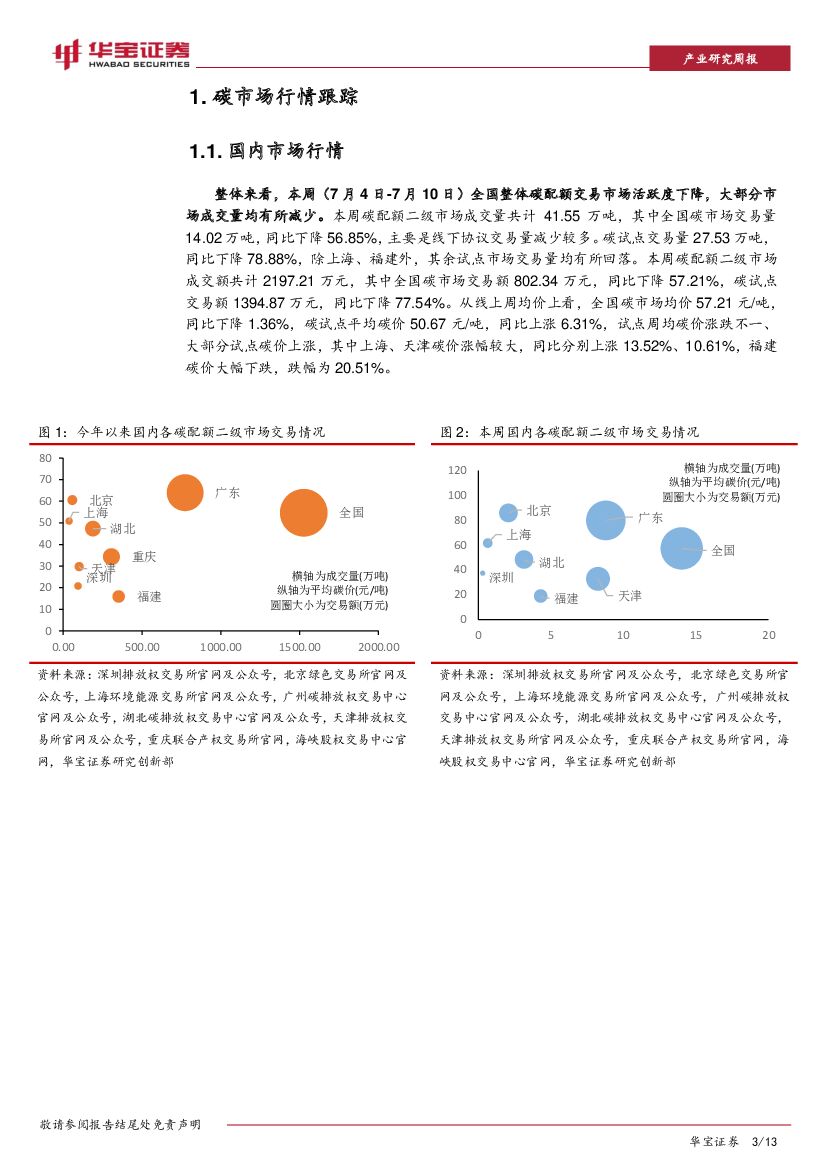 华宝证券:碳交易周报:国内碳交易成交量降超70%,欧盟碳期货均价下跌4.21%.pdf