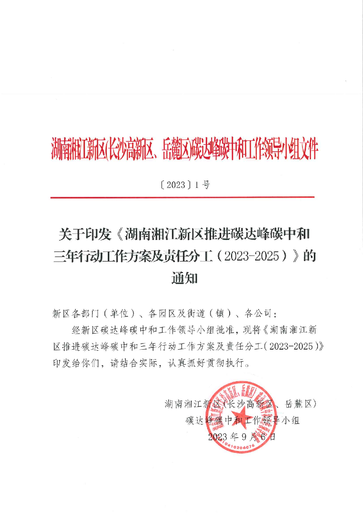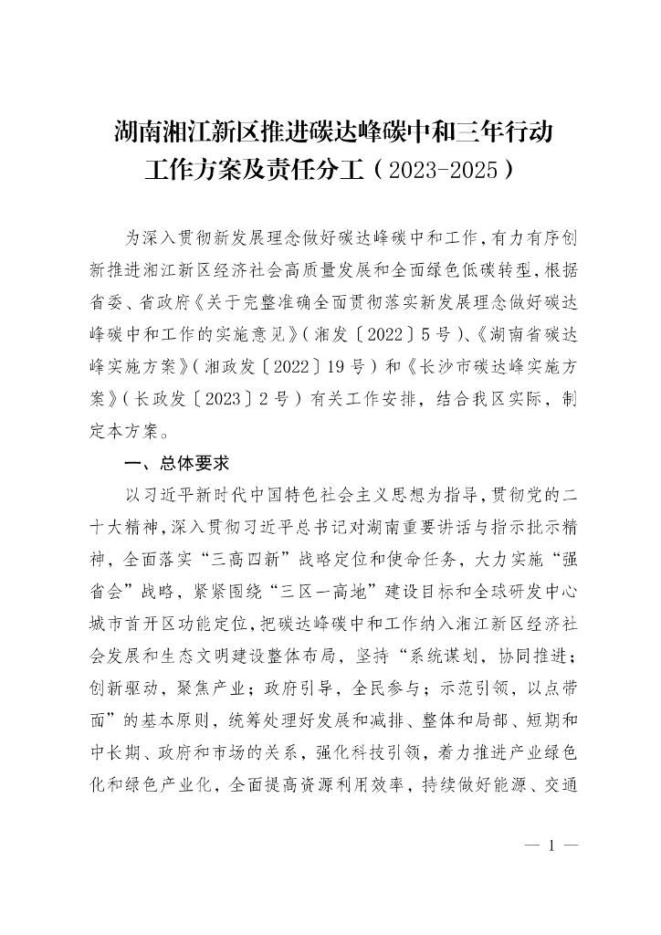 湖南湘江新区推进碳达峰碳中和三年行动工作方案及责任分工(2023-2025).pdf