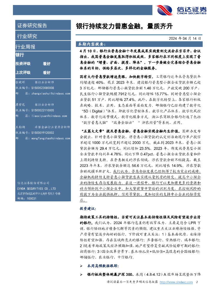 信达证券:银行持续发力普惠金融,量质齐升银行.pdf