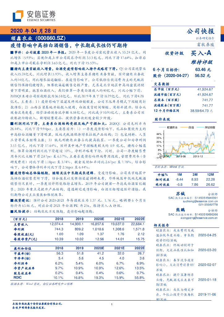 安信证券:顺鑫农业(000860)-疫情影响中高档白酒销售,中长期成长性仍可期待.pdf