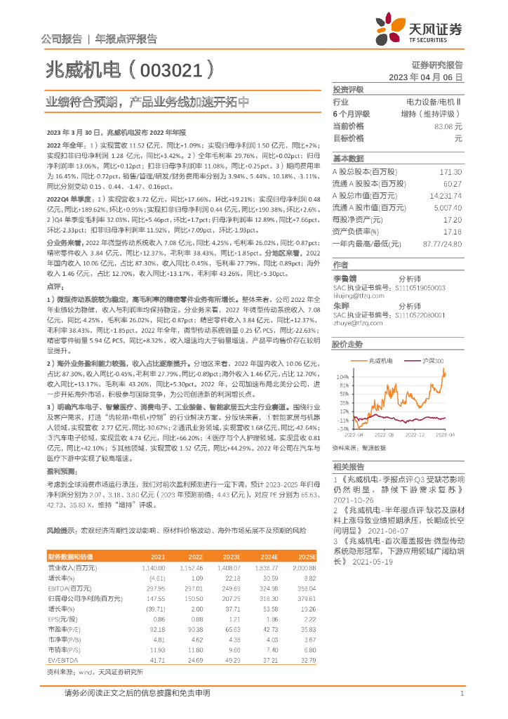 天风证券:兆威机电(003021)-业绩符合预期,产品业务线加速开拓中.pdf