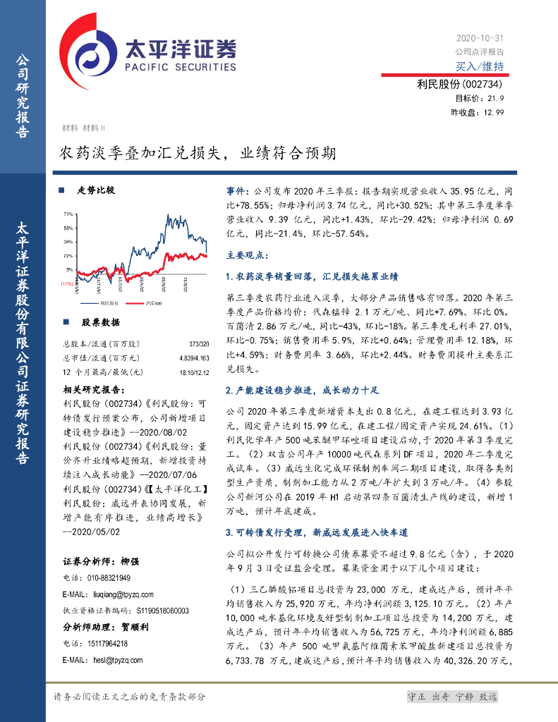 太平洋证券:利民股份(002734)-农药淡季叠加汇兑损失,业绩符合预期.pdf