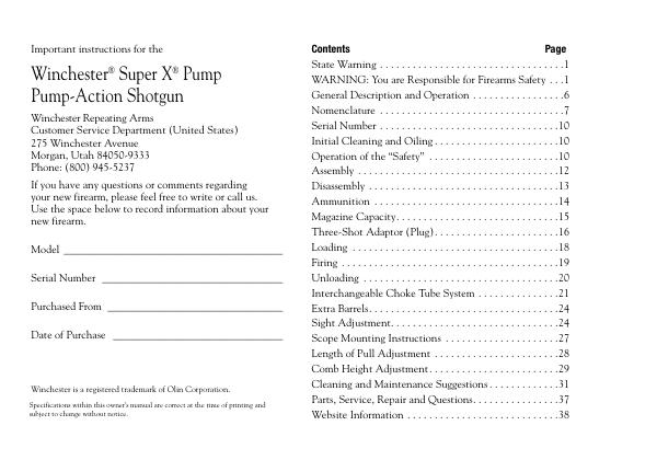 Winchester ® Super X® Pump Pump-Action Shotgun手册.pdf