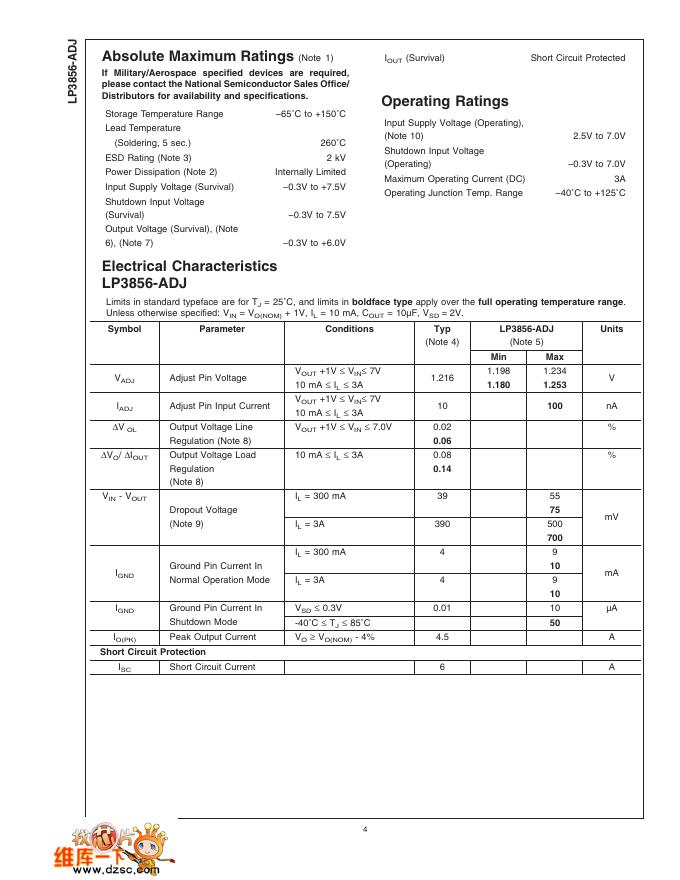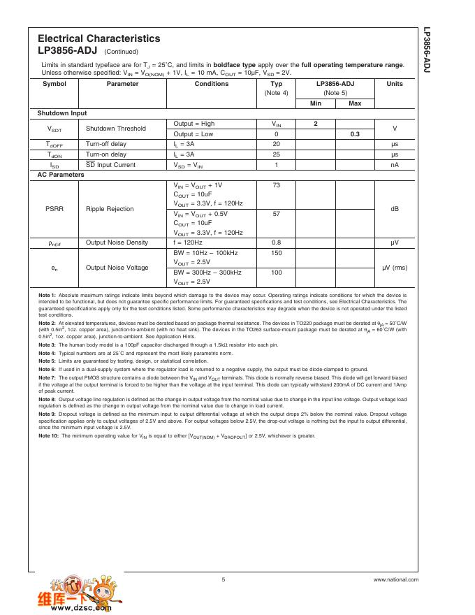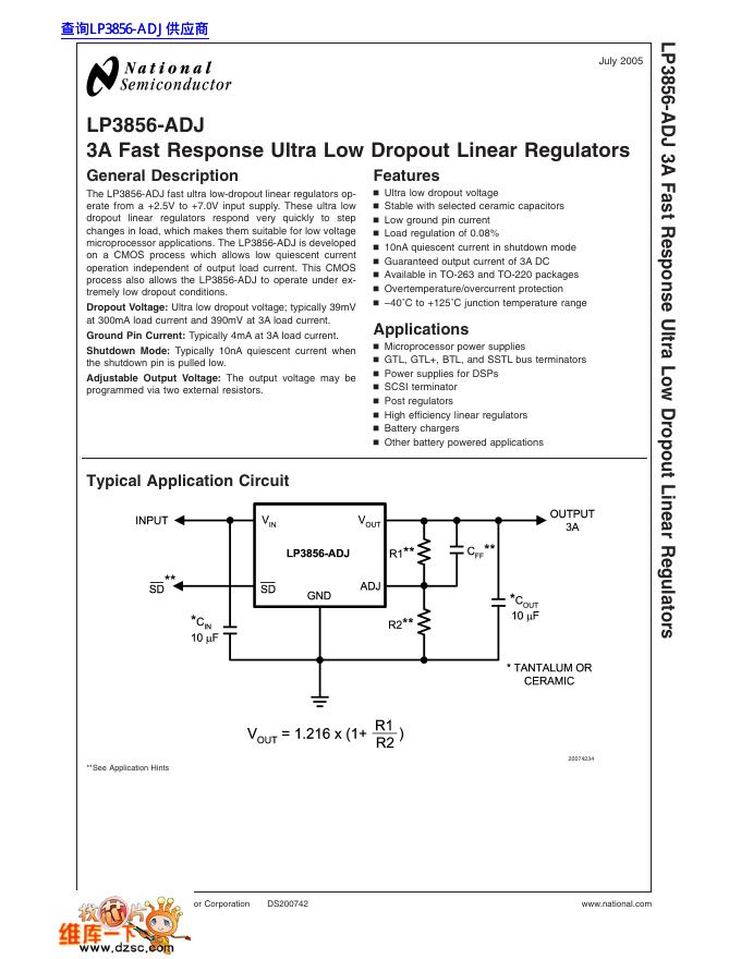 National Semiconductor LP3856-ADJ 3A Fast Response Ultra Low Dropout Linear Regulators 数据手册.pdf