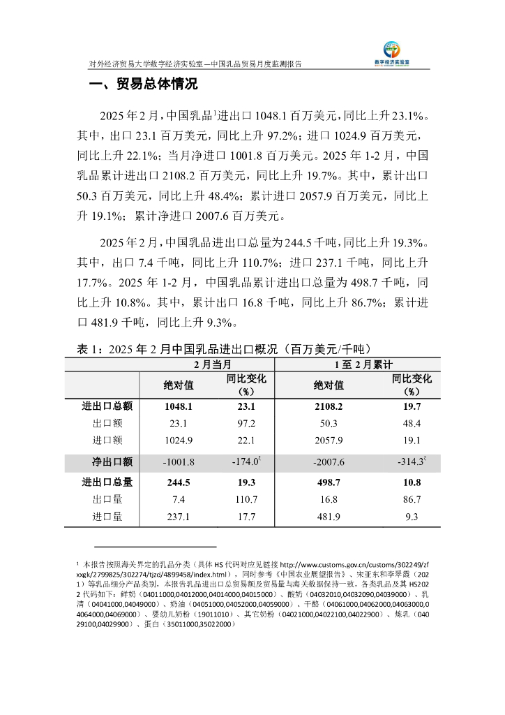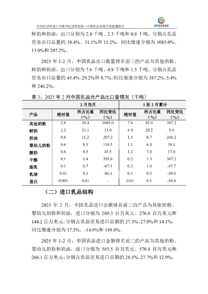 对外经济贸易大学数字经济实验室:中国乳品贸易月度监测报告(2025年1-2月).pdf