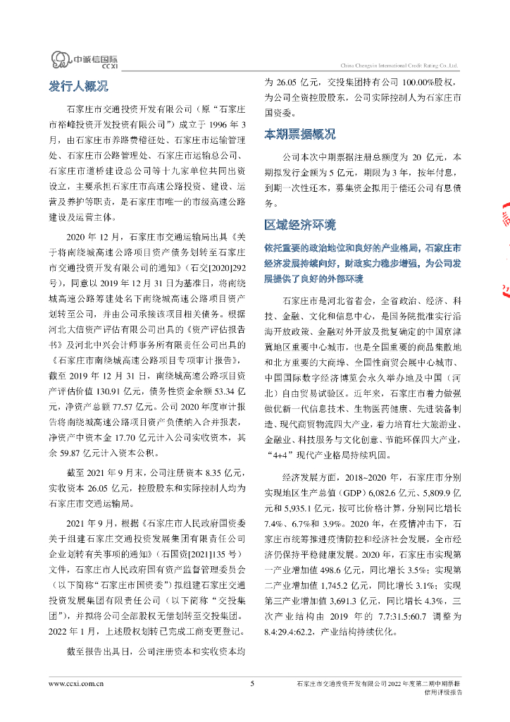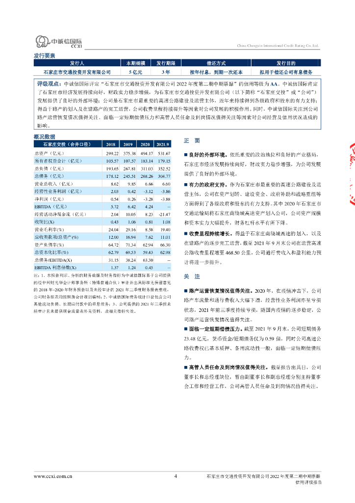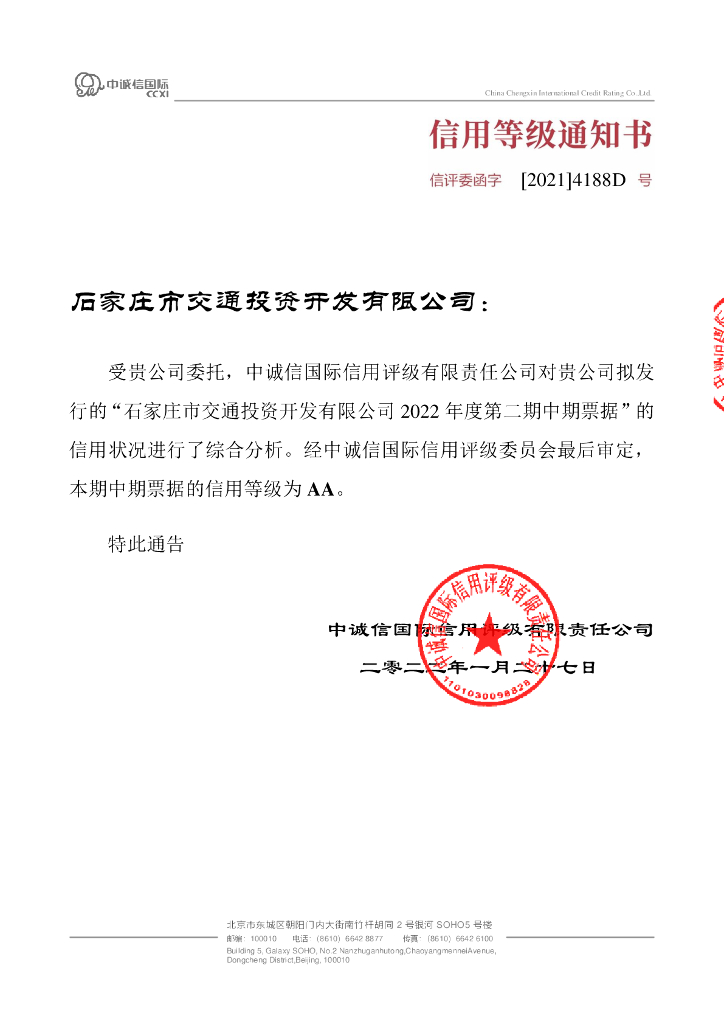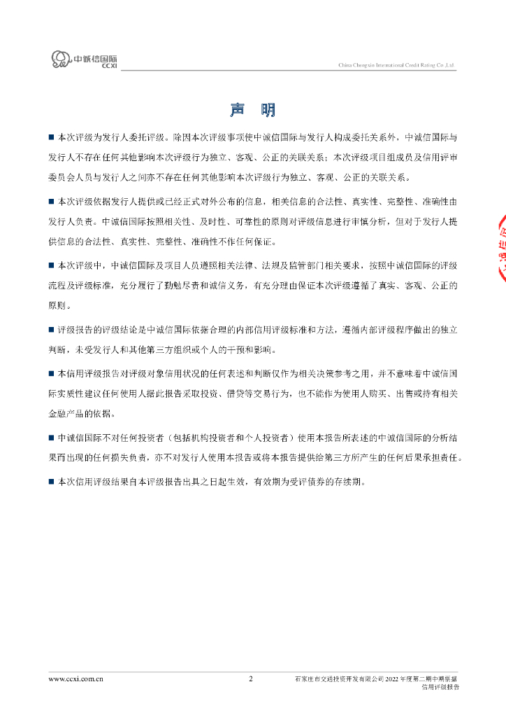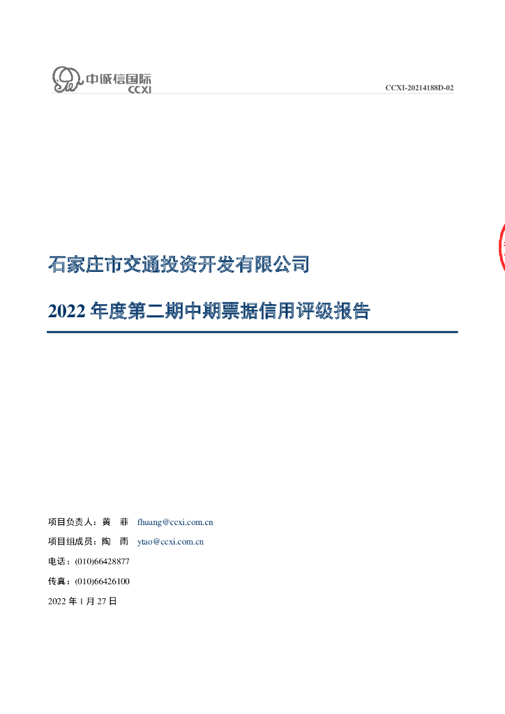 中诚信:石家庄市交通投资开发有限公司2022年度第二期中期票据信用评级报告.pdf