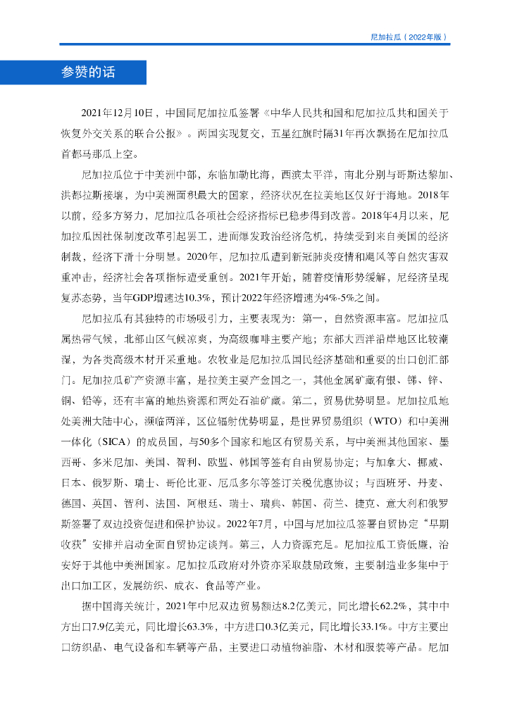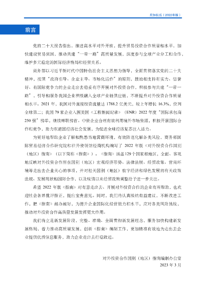 商务部:对外投资合作国别(地区)指南:尼加拉瓜(2022年版).pdf