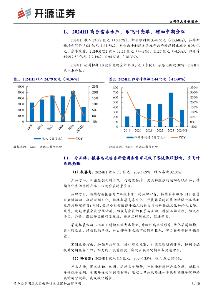 开源证券:报喜鸟(002154)-公司信息更新报告:2024H1商务需求承压,乐飞叶亮眼,增加中期分红.pdf