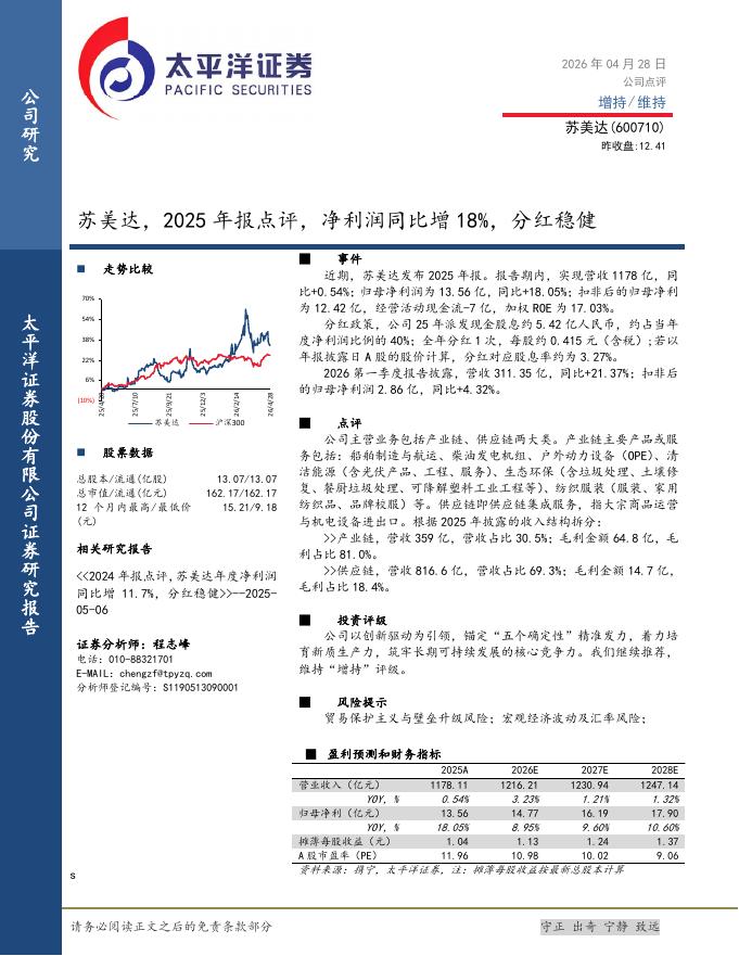 太平洋证券:苏美达(600710)-2025年报点评:净利润同比增18%,分红稳健.pdf