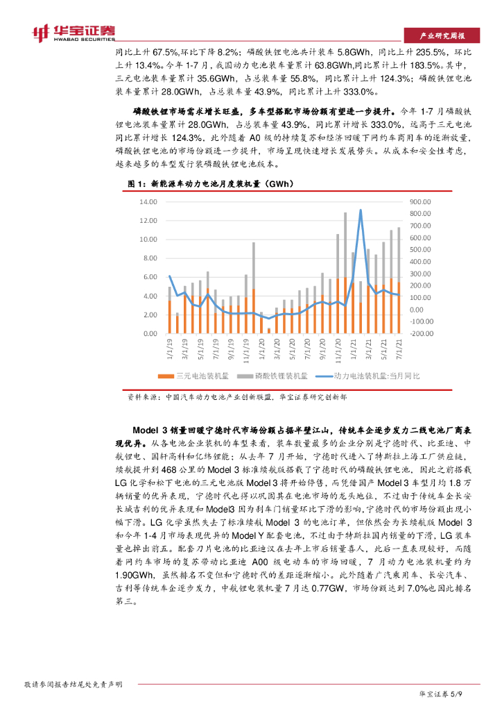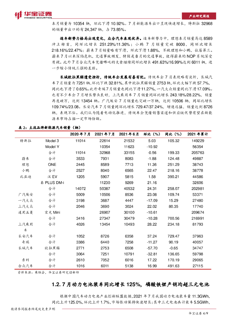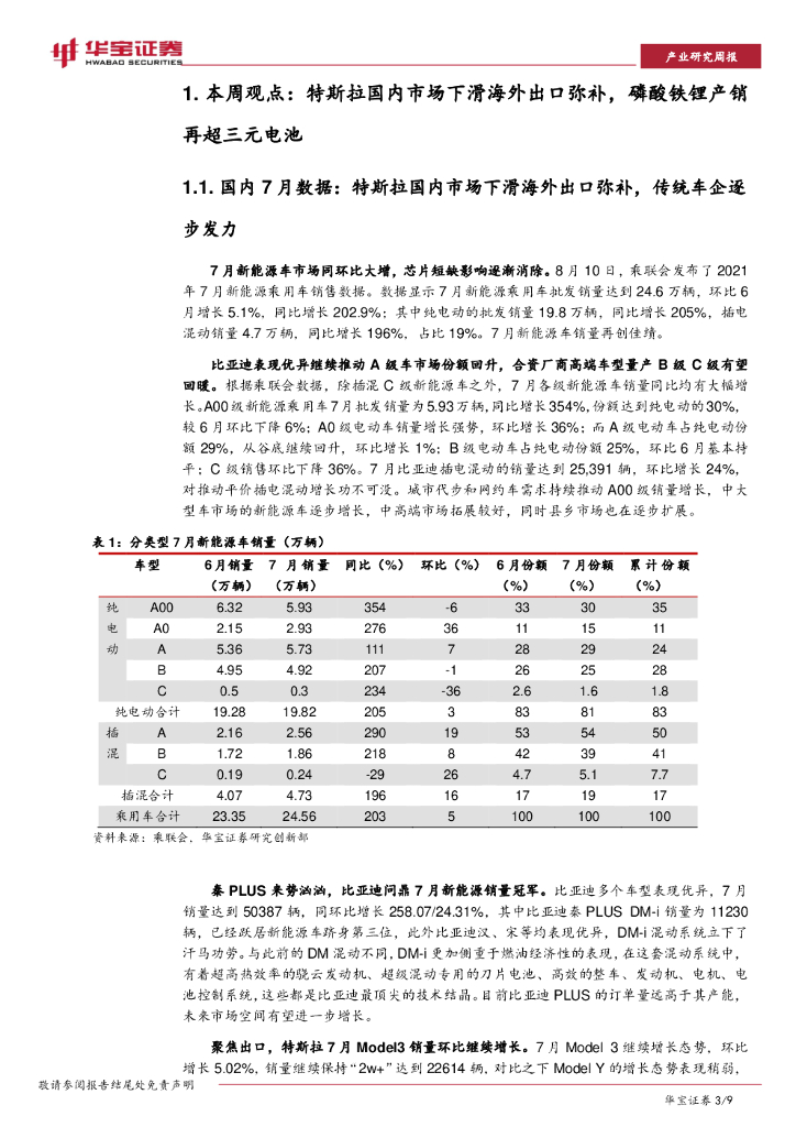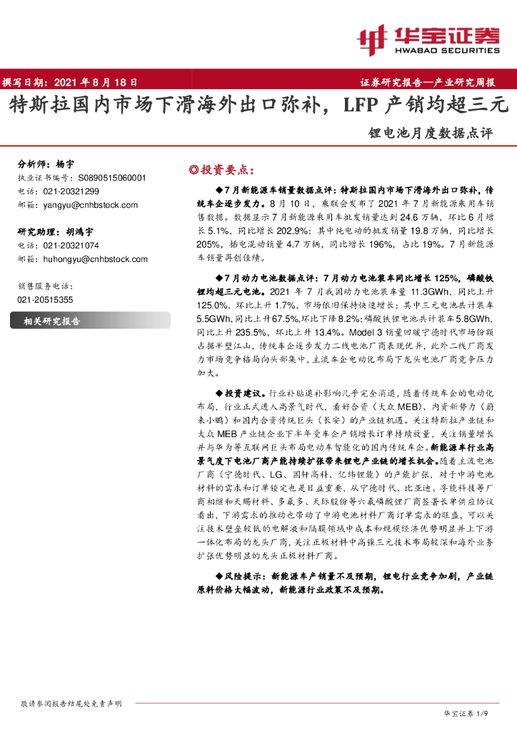 华宝证券:锂电池月度数据点评:特斯拉国内市场下滑海外出口弥补,LFP产销均超三元.pdf
