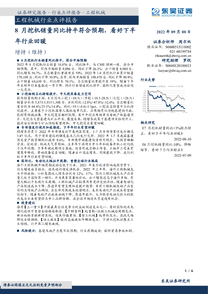 东吴证券:工程机械行业点评报告:8月挖机销量同比持平符合预期,看好下半年行业回暖.pdf
