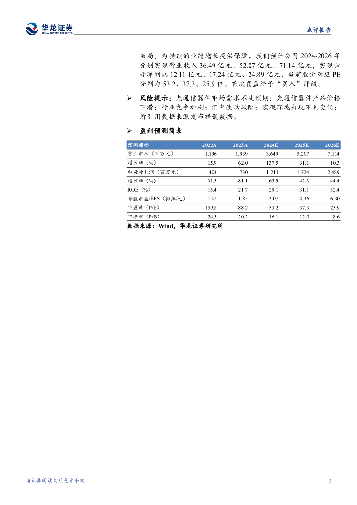 华龙证券:天孚通信(300394)-2023年年报及2024年一季报点评报告:高速光器件需求放量,公司业绩高增盈利能力提升.pdf