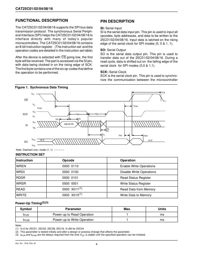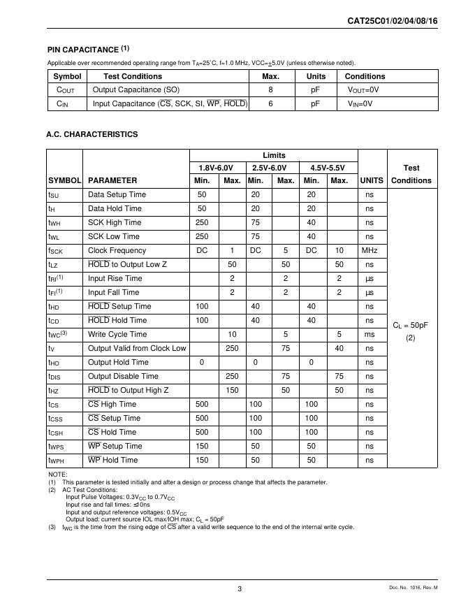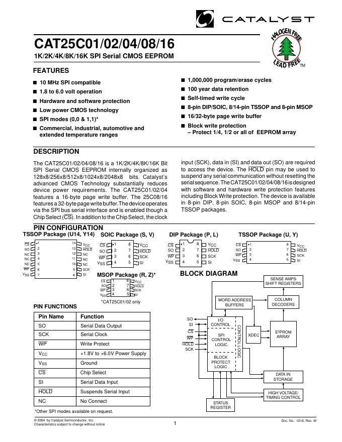 CATALYST SEMICONDUCTOR CAT25C01/02/04/08/16 1K/2K/4K/8K/16K SPI Serial CMOS EEPROM 数据手册.pdf