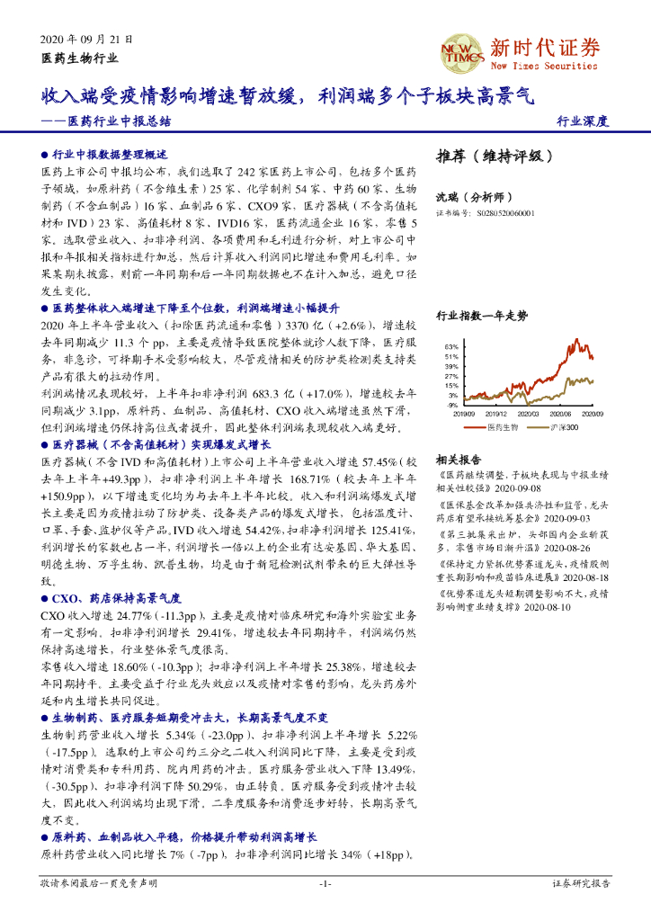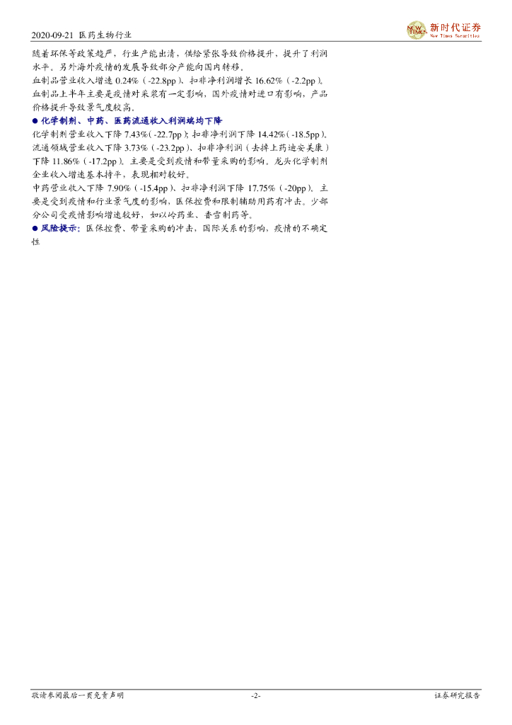 新时代证券:医药行业中报总结:收入端受疫情影响增速暂放缓,利润端多个子板块高景气.pdf