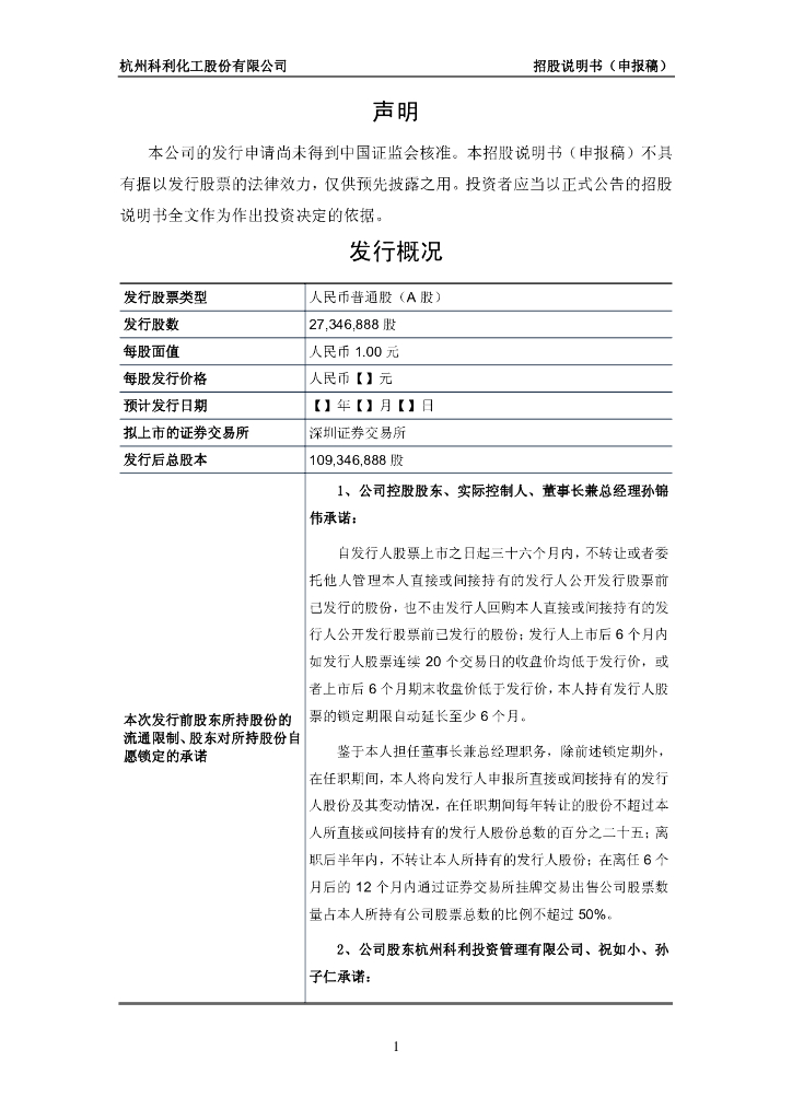 杭州科利化工股份有限公司深交所主板IPO上市招股说明书.pdf