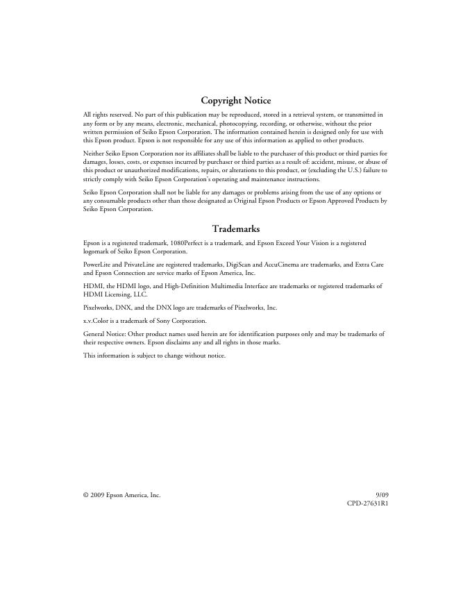 爱普生 PowerLite Pro Cinema 9100/9500 UB 家庭影院投影机 用户指南.pdf