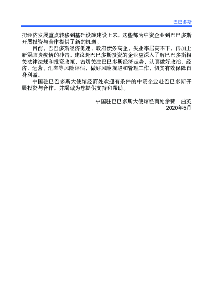 商务部:对外投资合作国别(地区)指南:巴巴多斯(2020年版).pdf