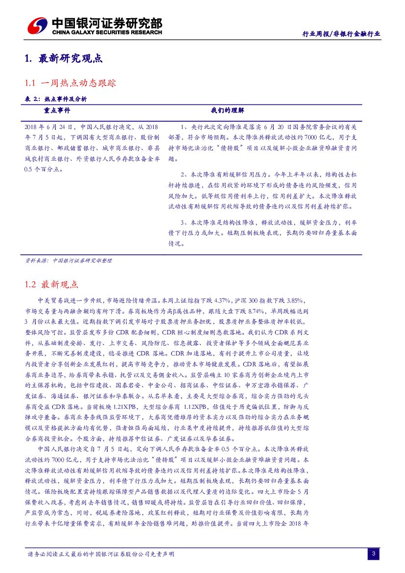 中国银河:非银行金融行业周报:降准释放流动性,股票质押整体风险可控.pdf