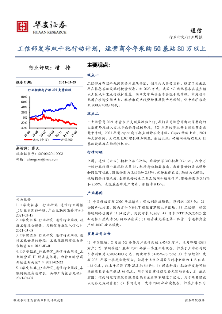 华安证券:通信行业周报:工信部发布双千兆行动计划,运营商今年采购5G基站80万以上.pdf