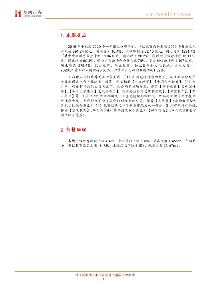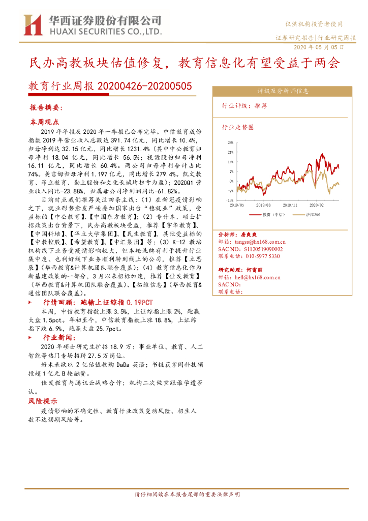 华西证券:教育行业周报:民办高教板块估值修复,教育信息化有望受益于两会.pdf