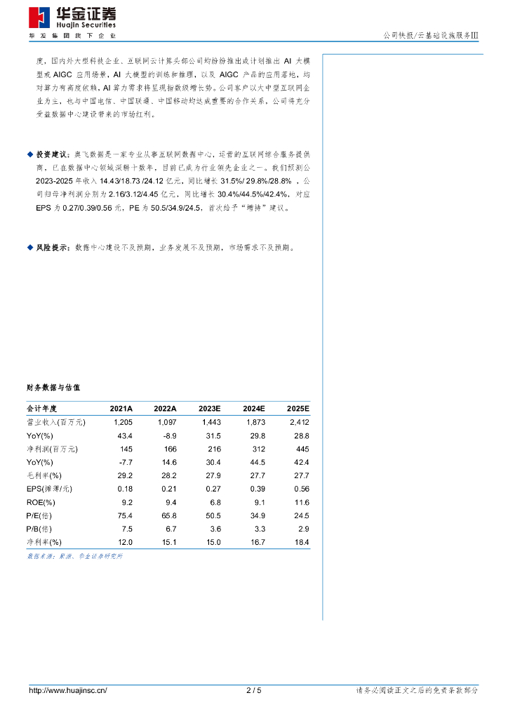 华金证券:奥飞数据(300738)-AI激起算力建设浪潮,拉动业绩稳步提升.pdf