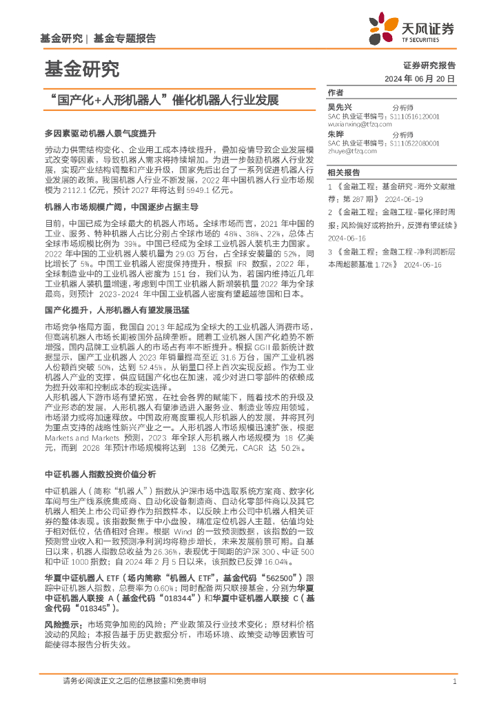 天风证券:基金研究:“国产化+人形机器人”催化机器人行业发展.pdf