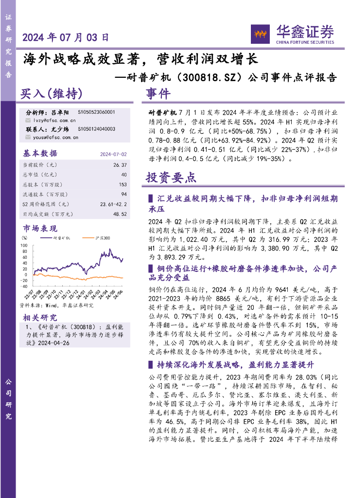 华鑫证券:耐普矿机(300818)-公司事件点评报告:海外战略成效显著,营收利润双增长.pdf