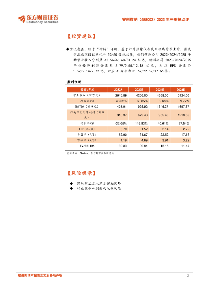 东方财富证券:睿创微纳(688002)-2023年三季报点评:聚焦红外和微波产品技术卓著.pdf