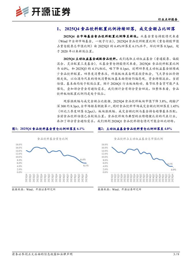 开源证券:食品饮料行业点评报告:2025Q4食品饮料持仓回落,布局窗口渐行渐近.pdf